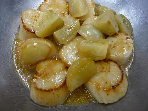 魚料理 当日入荷の魚と海老のポワレ、ジュ・ドゥ・ポワッソン添え