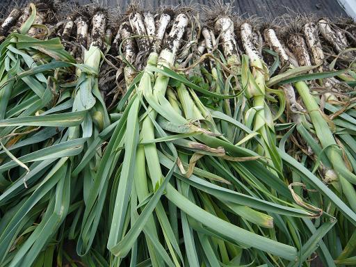 写真は雪が降ってくると畑から掘り出してくるのが大変になるのでその前に使いきれる分だけ収穫してきた、ポワロー(上の写真)とトレビス、それにサボイキャベツ(ちぢれキャベツ)の3種類です。