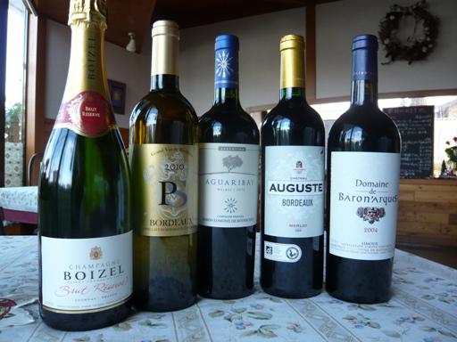 写真右から2番目のシャトー・オーギュスト2009、この赤ワインは完全なオーガニックワイン。開詮したら本当はその場で飲み干して欲しいのですが、飲み残った場合は添加物が入っていないので良い所2日で飲んで欲しいところ。