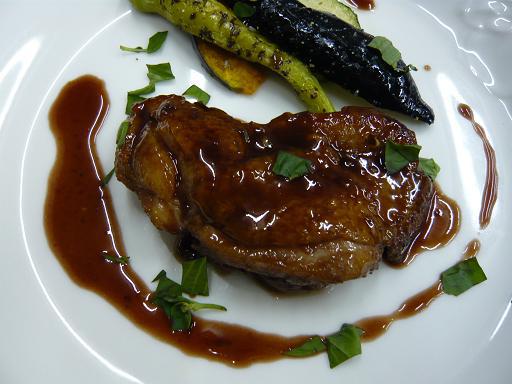 ・肉料理: 鶏肉とプラムの赤ワインと蜂蜜ソース (写真上)