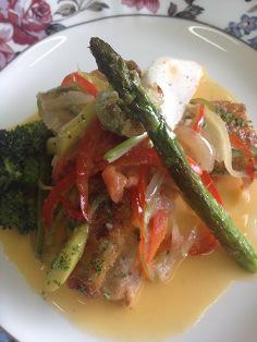 今日の料理は「岩手県産地鶏のソテー、バスク風」です。