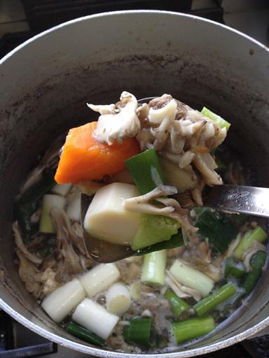 秋は何と言っても芋煮は欠かせませんね。本日ご予約のお客様用に洋風の芋煮仕込み中。牛肉でブイヨンを作り里芋を煮ています。スープが美味い^_^