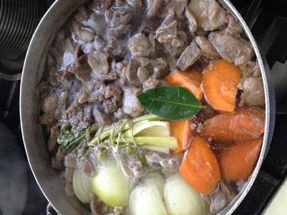 昨日は何とか雨も降らずに無事に長井の産業祭が終わりましたが、変わって今日は冷たい雨が降っています。さて明日は今年度第6回目の料理教室があります。段々と寒くなってくる煮込み料理が美味しくなってきますね。一番上の写真は明日のメーン料理で牛すじ肉の煮込みの下準備をしている所です。旨い出しとコラーゲンたっぷりのこの煮込み温まりますよ。明日ご参加の皆様お楽しみに。今回を含めて今年度は残すところあと2回となりました。次回11月11日(月)は一足早くクリスマス料理を作りますよ。参加ご希望の方はこちらまでお申込み下さい。TEL 0238-84-1442 ジュアンまで。または当店ホームページから内容をご確認いただいてからお申込み下さい。http://www4.ocn.ne.jp/~juin/cooking.htm写真真中は、昨日の長井産業祭出店時に出した馬肉のピロシキです。中身は馬肉と行者菜と茹で卵にカレー風味の味付けをしてあります。これを生地で包んで揚げれば美味しいおやつに早変わり。見事完売いたしました。下の写真は「馬肉ダービーで惣菜・一品料理部門優秀推奨品」の認定書を頂いた「馬肉のロースト、行者菜と青トマトのジャムソース」です。(写真は堀桃さん撮影)