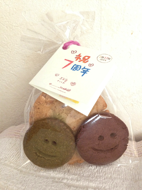 今日はお祝いで手作りクッキー頂きました〜♪天然酵母のコッペパンやルイボスティー等__ゲット!7周年なんですね^^。おめでとうございます。