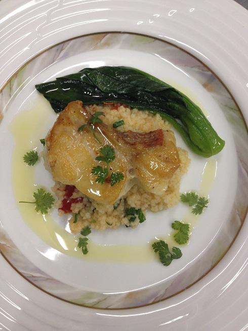 今晩は 昨日は定休日で温泉につかってリフレッシュしたつもりでしたが、今朝はもうちょっと長く布団にいたいところでした。日中は気温が緩んだのか軒下の雪がというよりも氷状になったものがせり出してきてかなり危険な状態に。突っついて落しましたが、その分厚さにびっくりです。さて今日の一枚は魚料理 キンキのアクア・パッツア クスクス添えです。...魚を煮た汁にクスクスとドライトマトを加えて煮汁をたっぷりと吸わせソースの代わりに。仕上げに小松菜を添えて、オリーブオイルを回しかけて完成です。