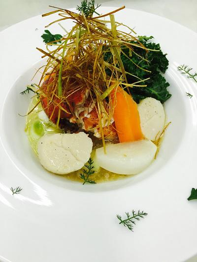 オマール海老とホタテ貝とポワローの蒸気蒸し、アンチョビバター風味です。