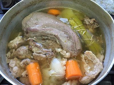 ブーケガルニを入れて3時間煮コトコト煮込んでいます。