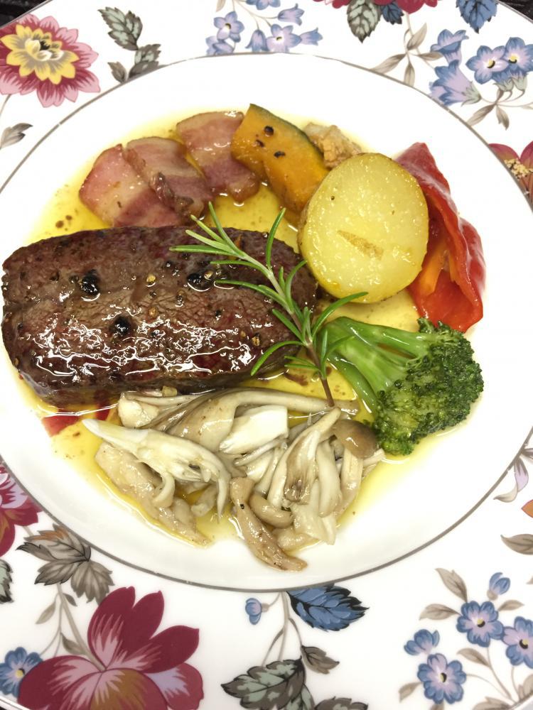 ガーリックオイルでローストした牛みすじ肉とタップリ野菜をどうぞ。ジュアンの秋メニューよりジュアン ホームページhttp://r-juin.com/