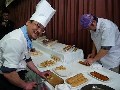 ネーミングの通り長いお菓子なんです。試食用にカットしてるのは、風林堂さんと風月さん。