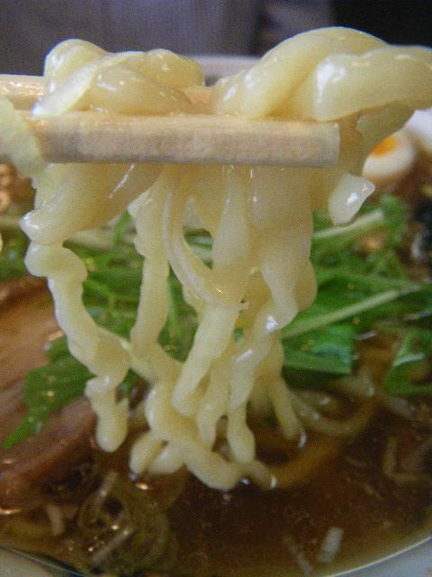 インパクトのあるちぢれ太麺に鰹だしの効いた醤油スープ。