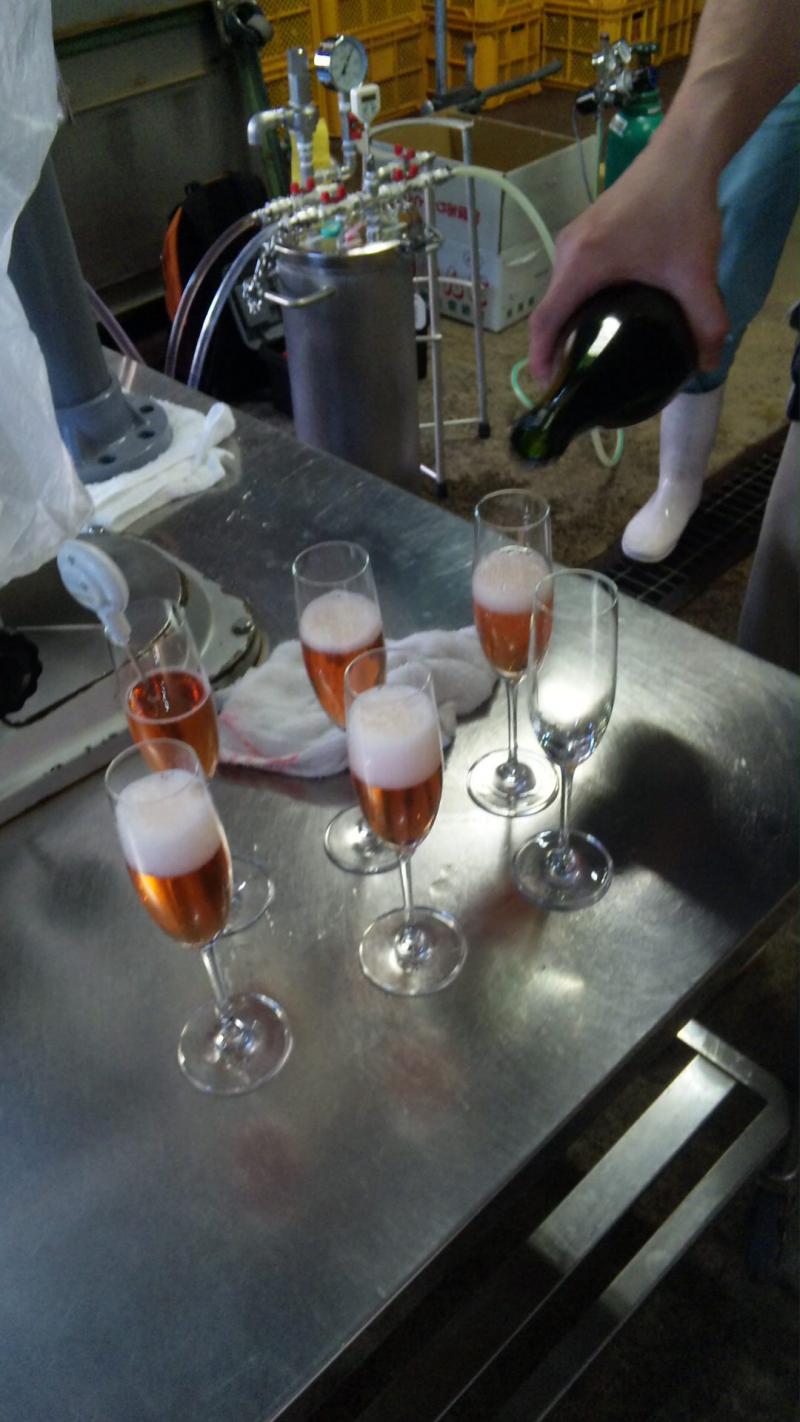 少量だげんとも、スパークリングワイン(発泡性ワイン)の試験製造をしました。初の試みなので、いろいろ不安もありますが。