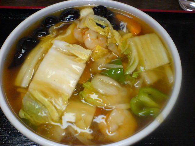 その上に海老が沢山入ったうま煮がたっぷり掛かっています。