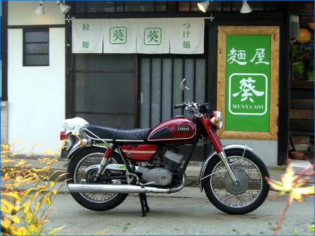 お供は念願のリアキャリアが装着なったヤマハDS6。