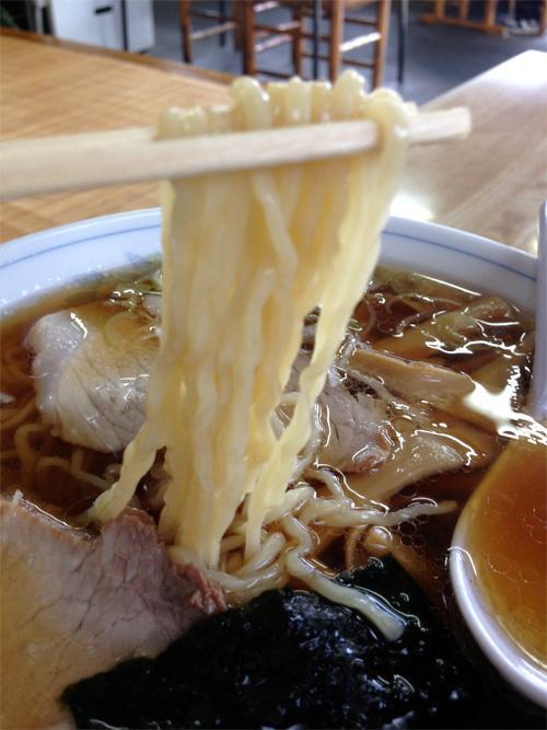 澄んだスープに自家製麺の手もみつるしこの縮れ麺。昔懐かしい真面目な一杯。
