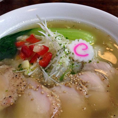住宅地内にある老舗の長好亭みさきは彩りあざやかな塩麹カセ鳥ラーメンです。