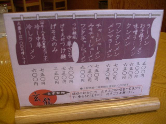 自家製麺玄龍のメニューです!