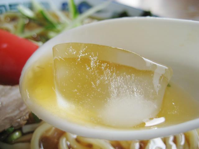 いなり支店の冷しラーメンのスープは氷が入ったタイプです。