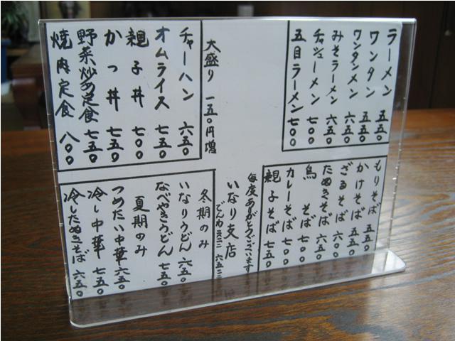 メニューのアップです。