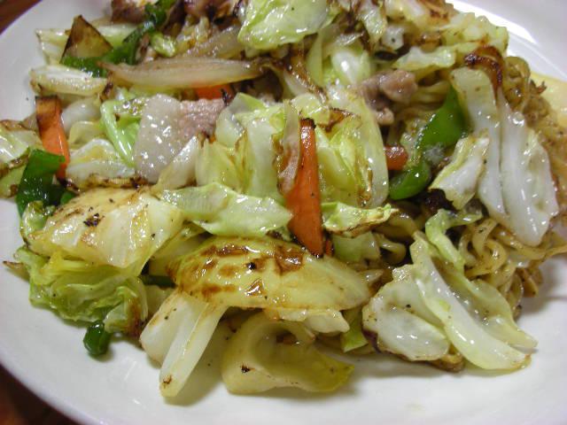 焼きそばとしては結構太めの縮れ麺に、こんがりと色づくお焦げ・・♪