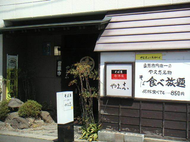 そば食べ放題の看板が目立ちます。