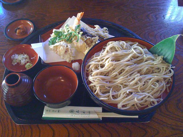蝋燭庵(あかしあん)の天ぷら付き盛りそばです。