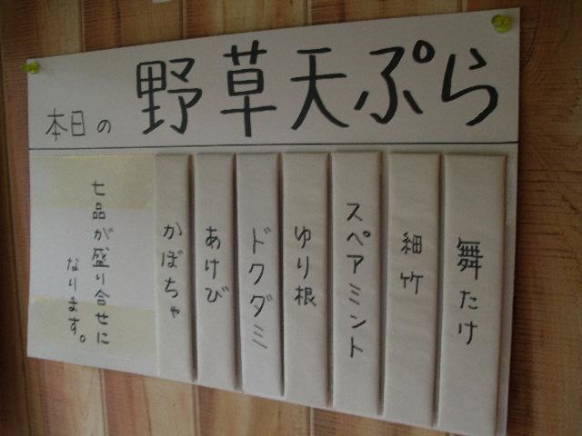 季節の山野草の天ぷらの盛り合わせは、春はタラの芽、よもぎ、椿の花、夏は桔梗の花、ミント。秋はあけび、ゆり根等が味わえます。
