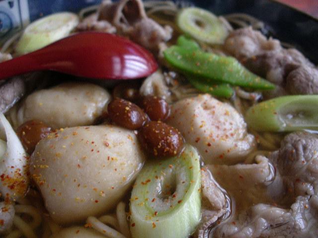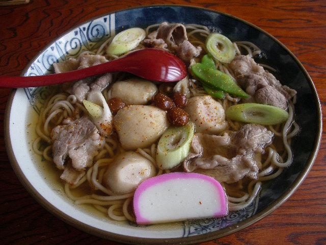 山形市中心部【霞城公園/東大手門&山形美術館】側の老舗そば屋さんの名物《芋煮そば》です。