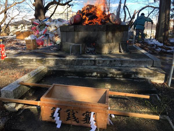 12月29日は古いお札や破魔矢などの縁起物を燃やし、一年間の無事に感謝する行事。