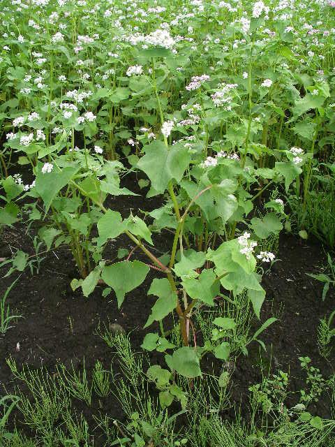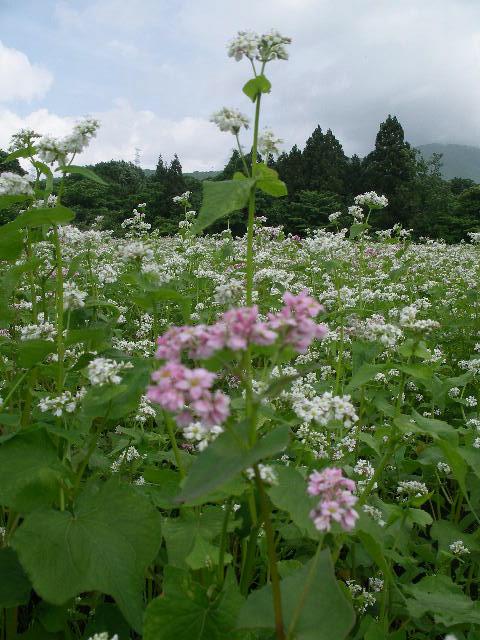 蕎麦の花の色って、白だけではなくピンクもあるようです。近くでみると桜のような花です。