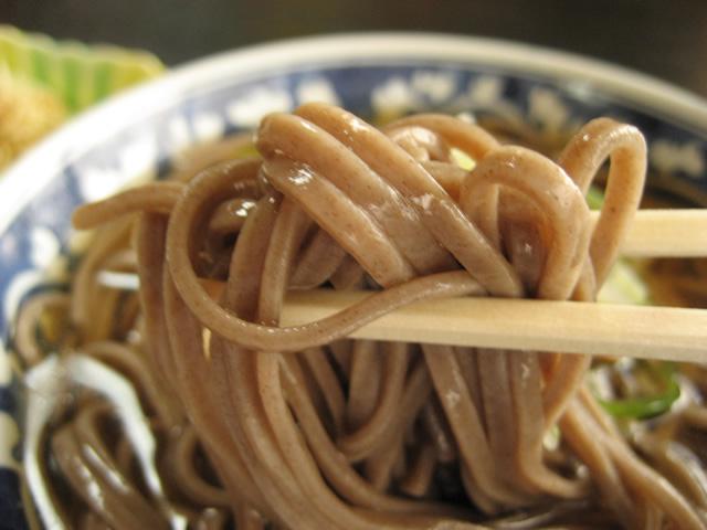 黒くてコシのあるお蕎麦。冷えたスープに良く合います。