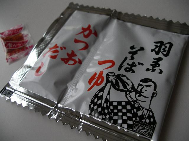 羽黒そばには、蕎麦つゆと粉末のかつおだしが付いています。