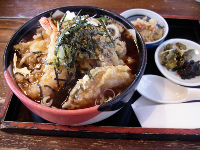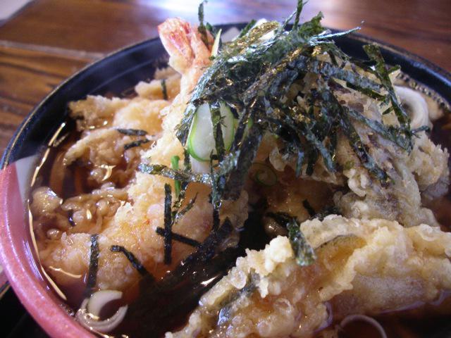 霞城公園のお堀の側にある初舟(はつふね)の天ぷら蕎麦です。