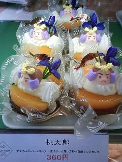 チョコスポンジにカスター生クリームを絞り、桃を飾り付けました。