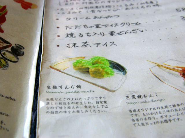 生麩ずんだ餅のメニューです。