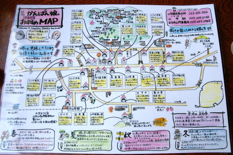手作りの山寺おすすめMAPが置いてあります。