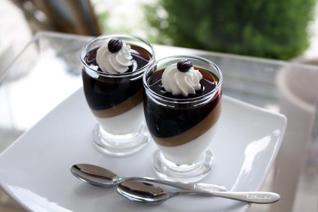 さわやかなクリームのババロアに、カフェオレムース、そして深みのあるコーヒーの香りがするゼリーは、喫茶店で飲む、アイスコーヒーにミルクを注いだような印象です。
