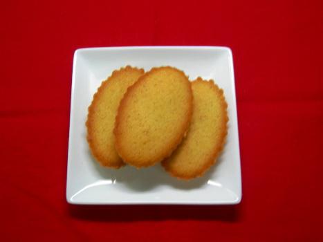 「フィナンシェ」とはフランス語で「金融家」・「金持ち」を意味します。これは菓子の形に由来し、フィナンシェ型と呼ばれる小さな台形の金型で作られたものが、色・形において金塊に似ていたところからこの名前がつきました。プードルダマンド(アーモンドパウダー)を主にし、卵白、バター、砂糖を混ぜて型に入れて焼いたお菓子です。焦がしバターとアーモンドの風味が特徴で、紅茶によく合うとされています。当店の「フィナンシェ」は楕円形の型で焼いています。
