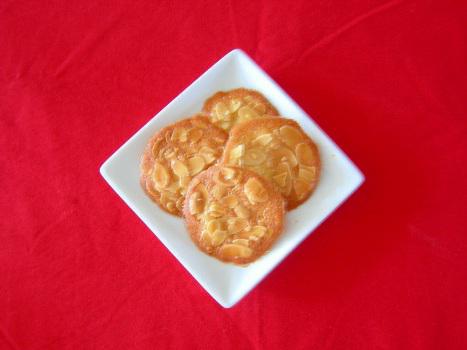 「まるっとアーモンド」は、20数年前に『アーモンドせんべい』という名で販売していました。たっぷりのスライスアーモンドを少しのバター生地で薄く焼き上げました。スライスアーモンドの風味と香ばしさ、食感がとてもよくでているお菓子です。