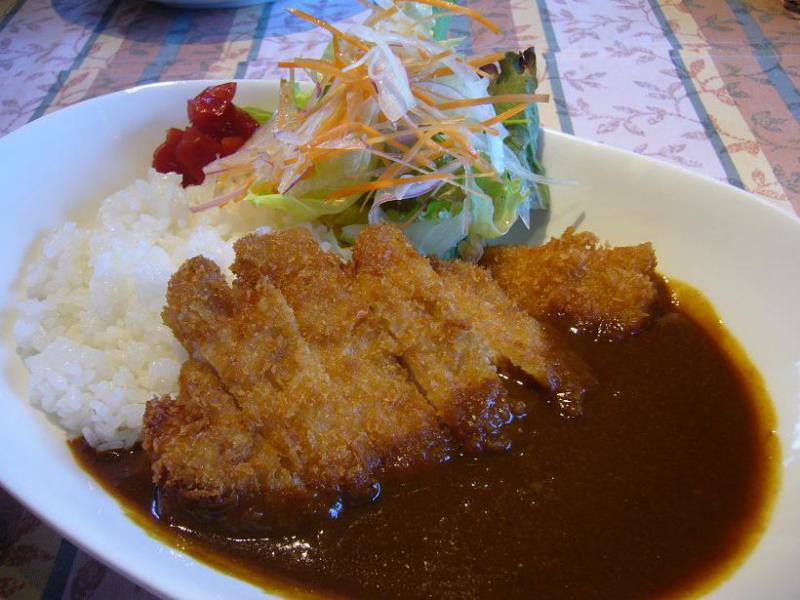 食べたのは、写真の米沢豚のカツカレー。手の込んでいるカレーで後で辛さを追っかけてくる感じ。深みのある味だ。また、とんかつも厳選された豚肉らしく、脂身にちょっとした甘味を感じる。オイシイネー・・。つきあわせの野菜サラダもシャキシャキ!