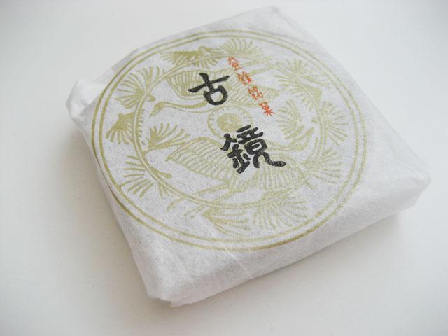 羽黒山の鏡池より出土された古鏡をモチーフにした、鶴岡木村屋の「古鏡」です。
