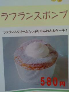 ボンブの生地はプレーンに、クリームにラフランスソースを入れ作りました。