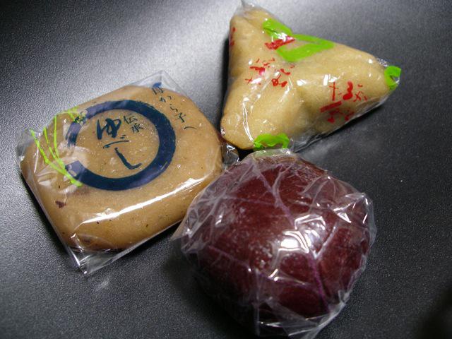 「伝承ゆべし」と「さんかくゆべし」と「しそ巻きゆべし」です。