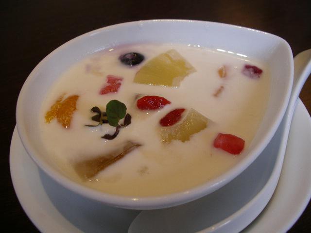 愛玉(あいぎょく)ゼリーとフルーツをいれたデザートです。
