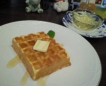 写真はワッフル(バターとはちみつ付き 300円)とハーブティー。
