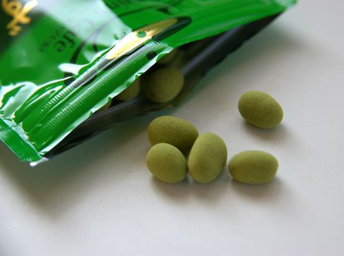 あずき一粒をホワイトチョコと抹茶パウダーでコーティング、