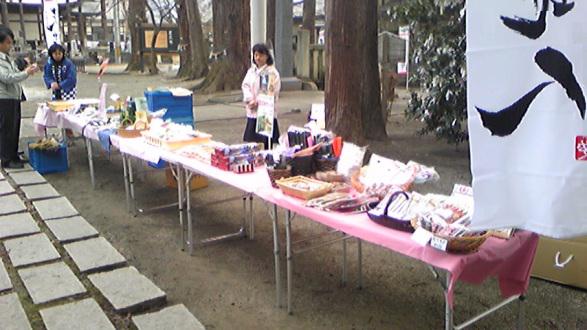 神社の境内で「天地人」の関連グッツの販売を行います。