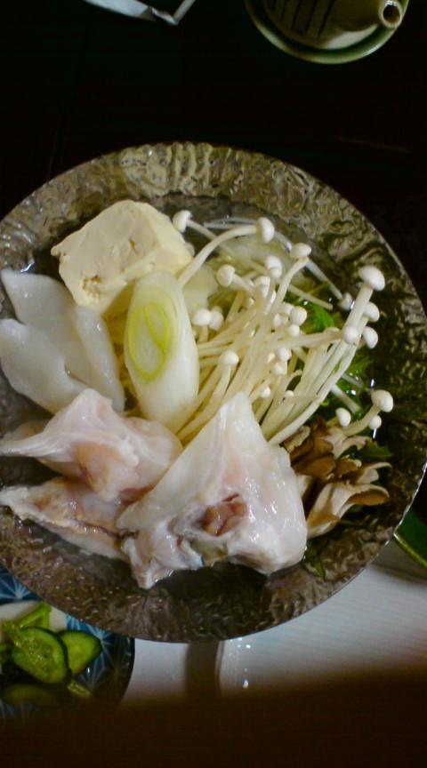 写真は、奥様が撮影した、ふぐ鍋の材料。ひとり一人用の鍋だったみたいで・・。でも、そのほかにも、大きい鱈きくの天ぷら、サヨリと太刀魚のフライ、マンゴーケーキなど、いろいろなものを食べてきたようで、満足、マンゾク・・。