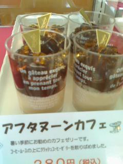 暑い季節にお勧めのカフェゼリー。コーヒームースの上にクラッシュコーヒーゼリーを散りばめました。