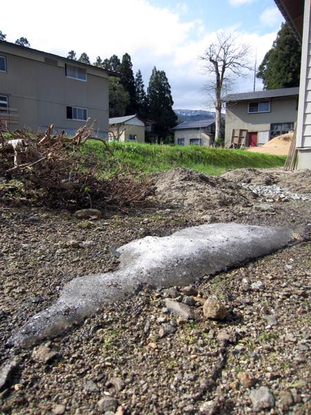 裏庭にもっさりつもっていた雪も春風に吹かれて、こんなに小さくなりました。