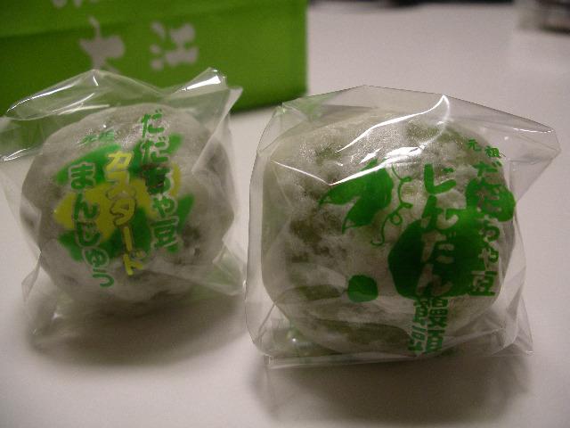 大江餅屋の《元祖だだちゃ豆じんだん饅頭》と《だだちゃ豆カスタードまんじゅう》です。